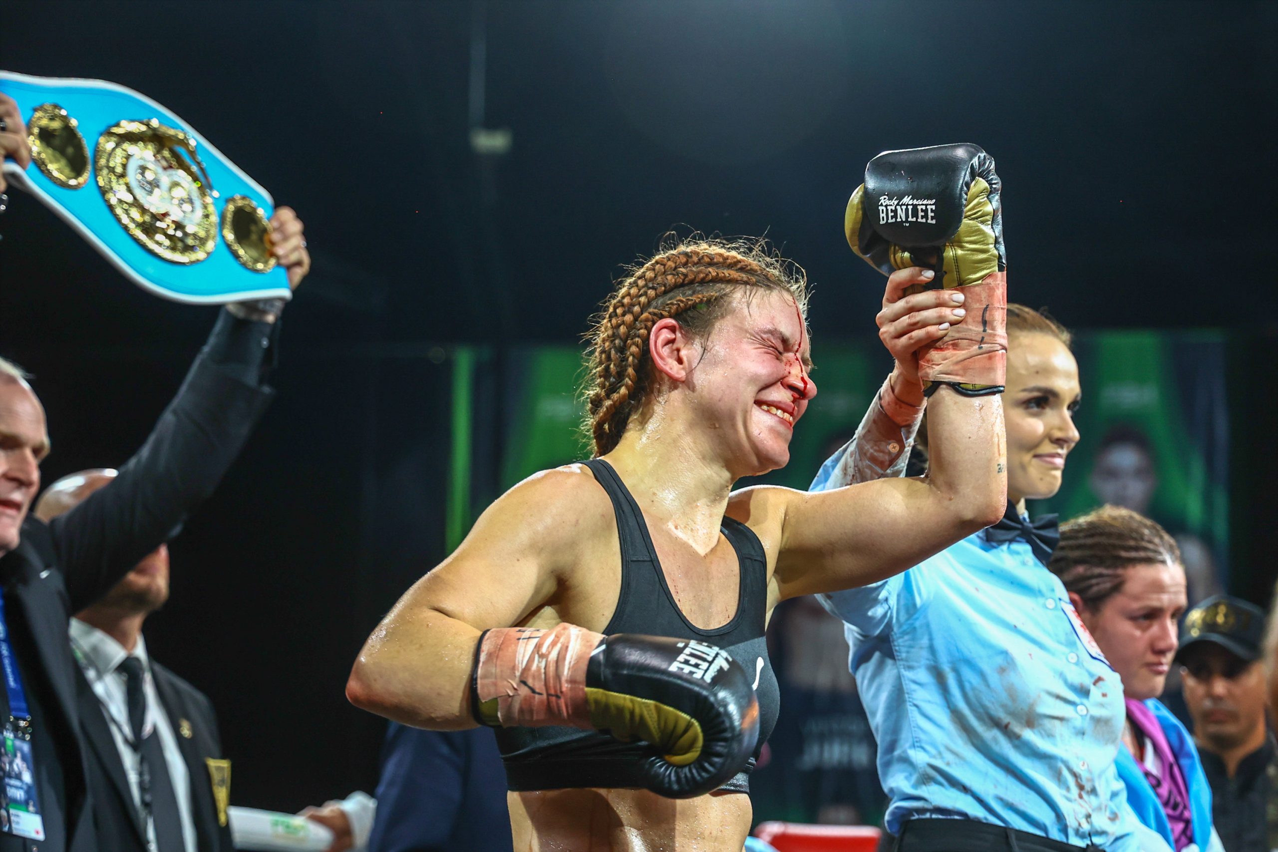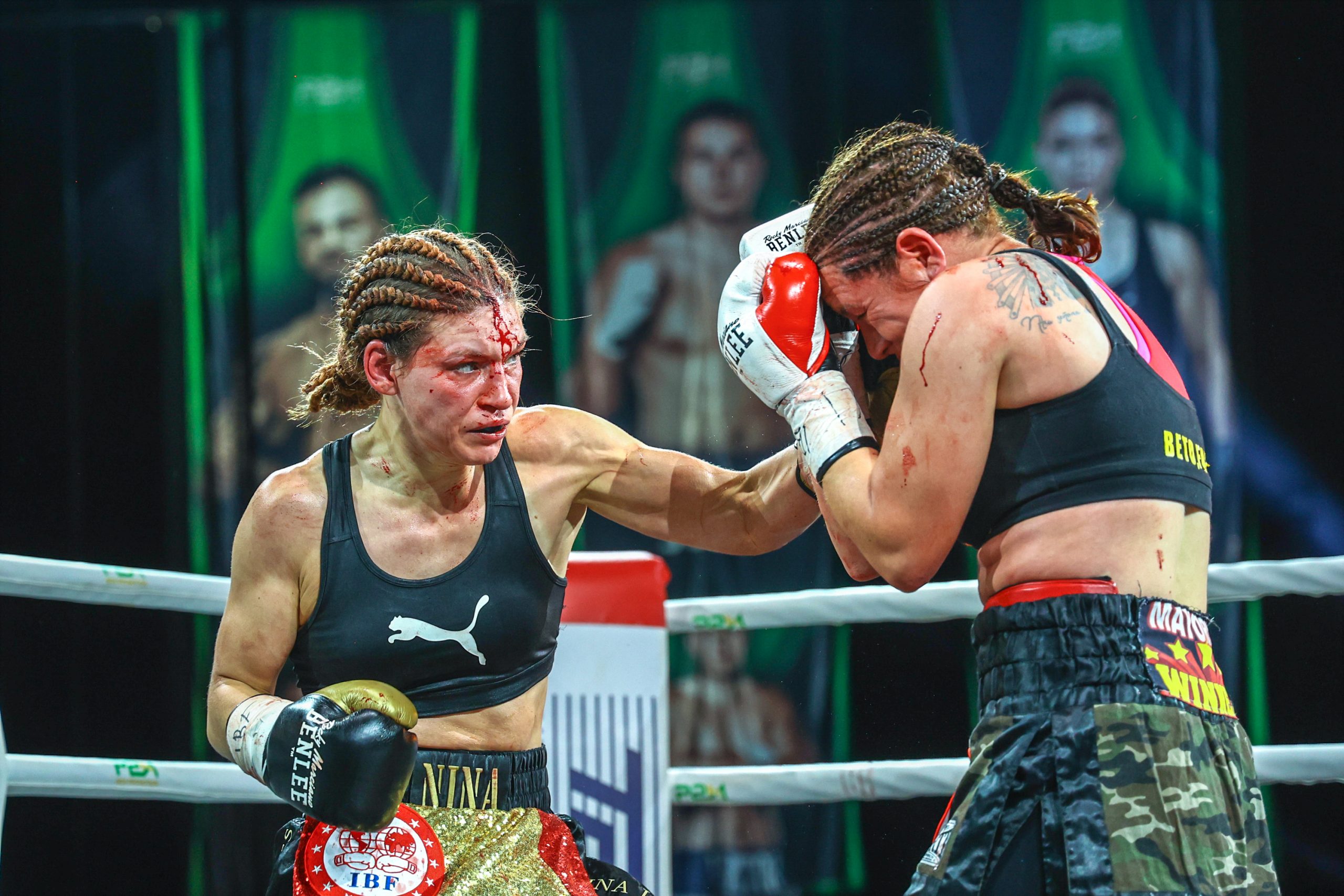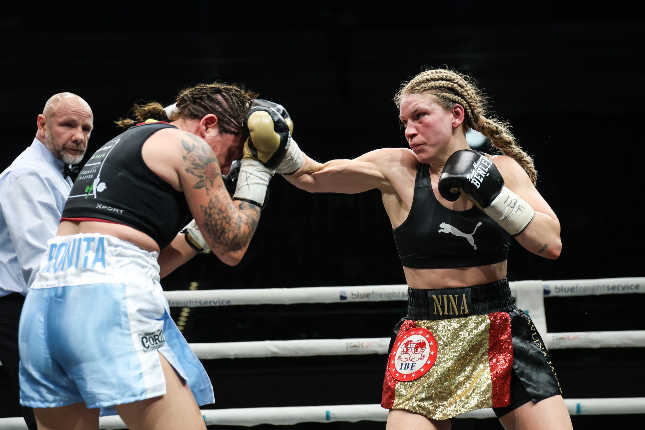 Bei "Rostock-Boxt - Die Rückkehr" am 10. Mai 2025 verteidigt Nina erfolgreich zum 1. Mal Ihren Gürtel und bleibt IBF-Weltmeisterin!